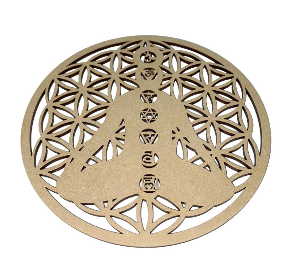 Plaque de rechargement Fleur de Vie 7 Chakras - Bois Sculpté
